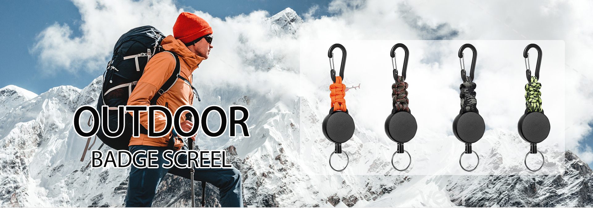 XXH-P025 Custom Logo Retractable Key Reel Multi Tool Carabiner Braided Lanyard and Abs Heavy Duty Yoyo Badge Reel with Key Ring